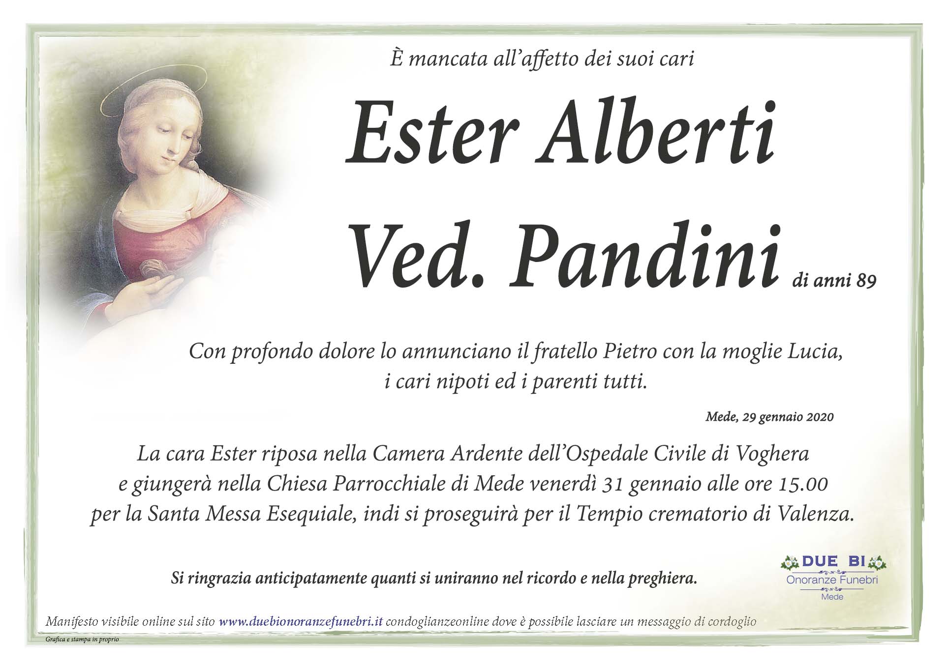 Con la provincia pavese puoi cercare la persona scomparsa e ricordarla con un messaggio voghera. Inoltre è possibile reperire le informazioni su luoghi e orari dei funerali e delle altre celebrazioni.